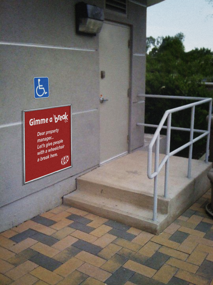 Deuren, trottoirs, verkeerspleinen, perrons. Mensen met een fysieke beperking raken nog vaak genoeg in onbegaanbare situaties verzeild. KitKat maakt een statement door er wat aan te doen. Op diverse onbegaanbare plekken vragen ze de verantwoordelijke autoriteit om aandacht.